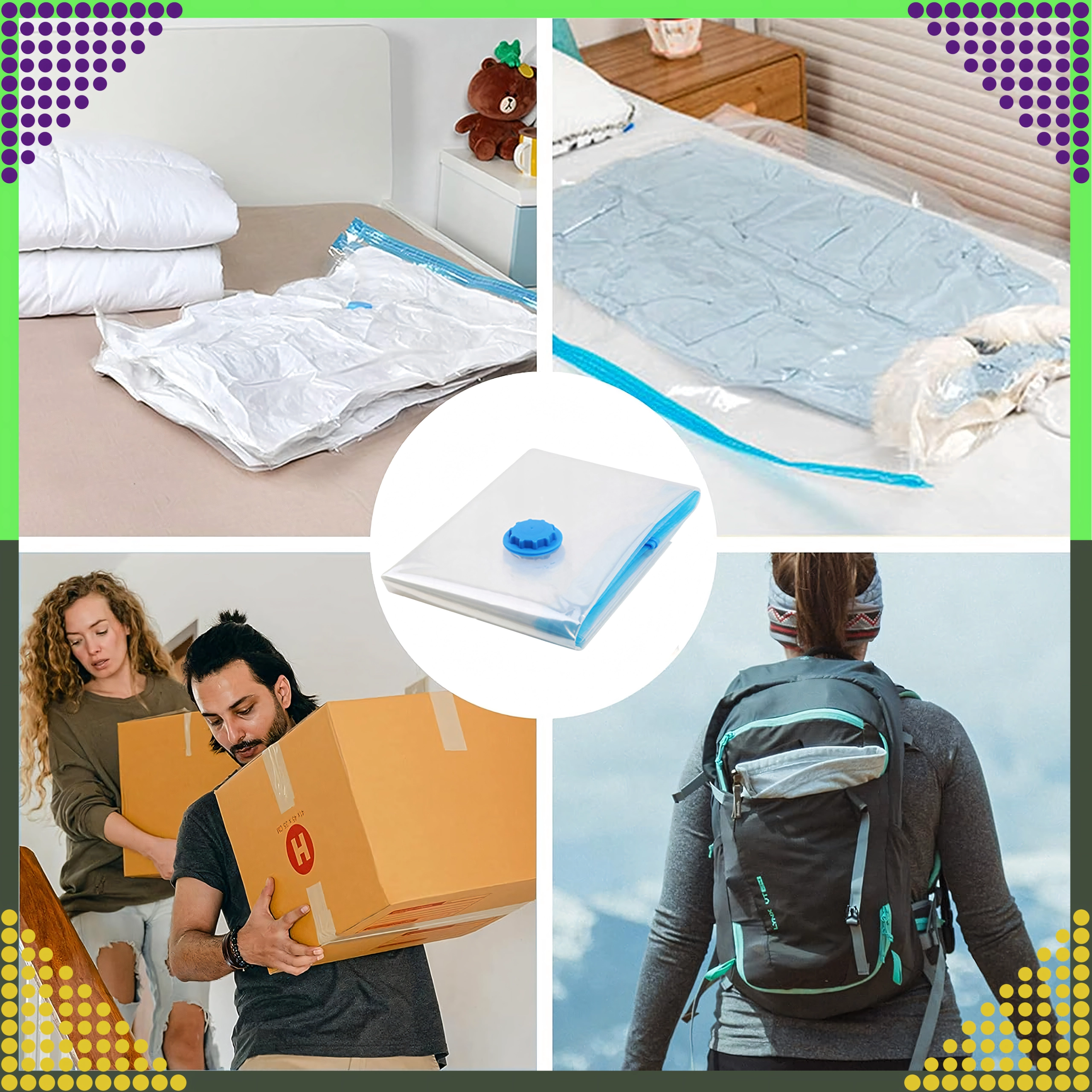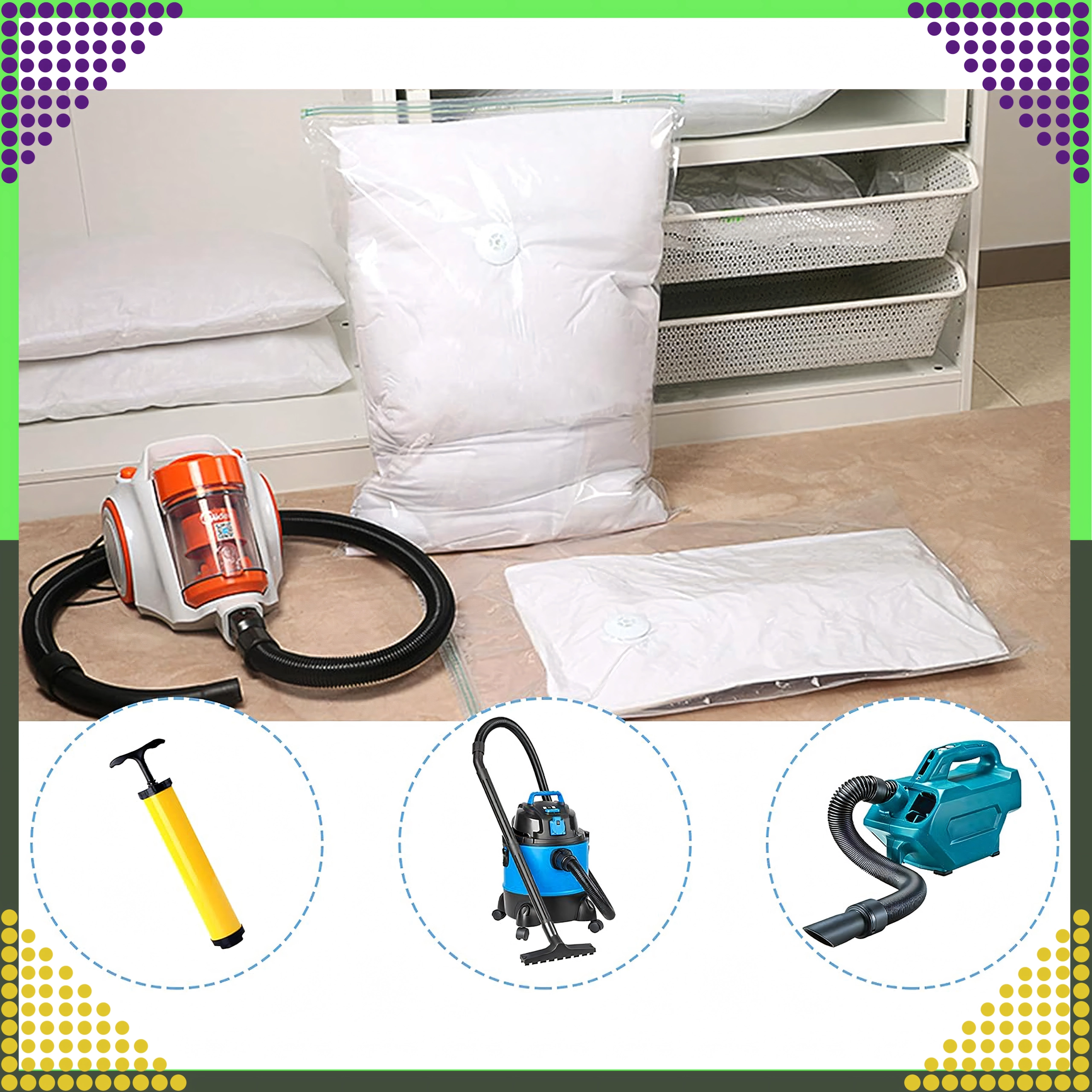 - Łatwa obsługa: napełnij, zamknij zamek i odessij powietrze zwykłym odkurzaczem