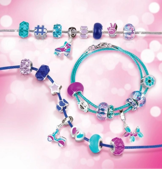 Mieszanka srebrnych, niebieskich i fioletowych koralików uzupełniona jest zabawnymi zawieszkami, dzięki którym stworzysz unikatową biżuterię skrojoną na miarę.