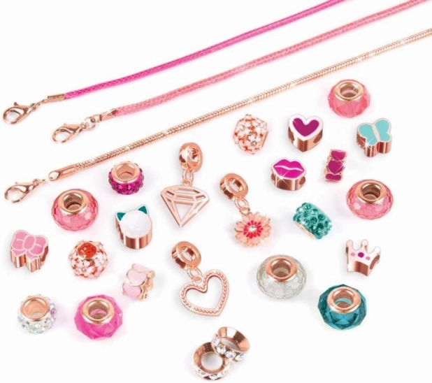 Stwórz własną biżuterię z tym różowym zestawem do tworzenia bransoletek, który zawiera wszystko, czego potrzebujesz: koraliki, zawieszki, gotowe bransoletki oraz instrukcje. Idealna kreatywna zabawa dla dzieci od 8 lat.