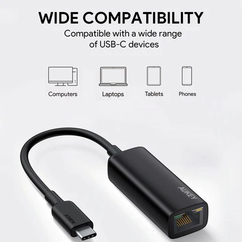 Adapter AUKEY USB‑C na RJ45 doda Twojemu laptopowi, ultrabookowi lub tabletowi niezawodny gigabitowy Ethernet dla szybkiego i stabilnego połączenia. Dzięki USB‑C oraz standardom IEEE jest w pełni kompatybilny z nowoczesnymi urządzeniami i starszymi sieciami.
