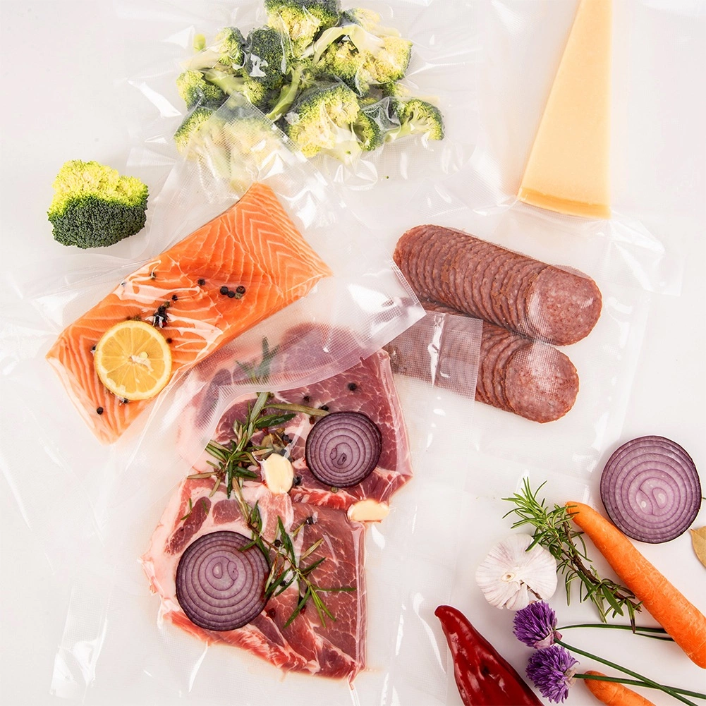 Jedna strona woreczka jest tłoczona, co zapewnia płynny odpływ powietrza, poprawia wydajność zgrzewarki próżniowej i gwarantuje niezawodny, mocny zgrzew.