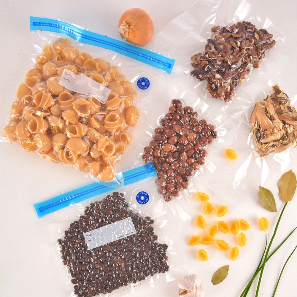 Folia o teksturowanej powierzchni, podwójny zamek uszczelniający i solidny zawór zapewniają niezawodne pakowanie próżniowe i długą żywotność nawet przy częstym użytkowaniu.