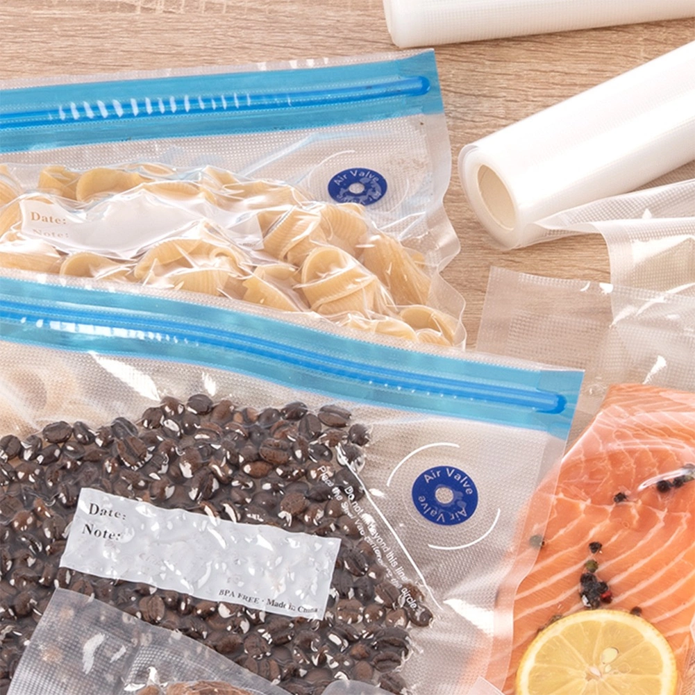 Zestaw 10 worków próżniowych jest idealny do przechowywania mięsa, warzyw, serów, pieczywa i gotowych dań. Dzięki podwójnemu zamkowi i zaworowi do odsysania powietrza tworzysz szczelne środowisko, które pomaga ograniczyć utlenianie, wysychanie i odmrożenia. Jedna strona jest gładka, druga ma strukturę dla równomiernego odsysania.