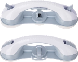 Praktyczny uchwyt łazienkowy z przyssawkami dla większego bezpieczeństwa i stabilności pod prysznicem, przy wannie lub toalecie. Montaż bez wiercenia, trzy mocne przyssawki, ergonomiczny chwyt i praktyczny haczyk na akcesoria. Solidna i wytrzymała konstrukcja z wysokiej jakości tworzywa odpornego na wilgoć. Szybka instalacja na gładkich, odtłuszczonych powierzchniach oraz możliwość zdjęcia uchwytu w dowolnej chwili bez uszkadzania płytek.