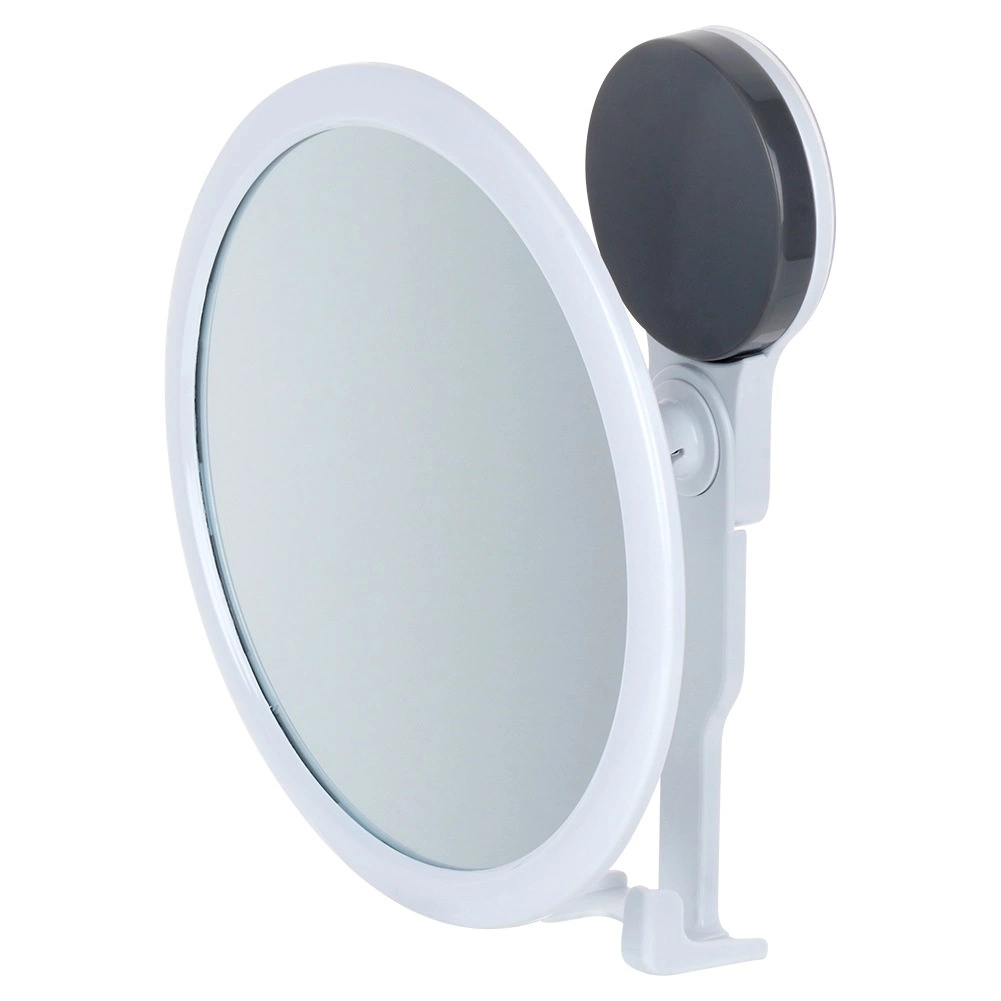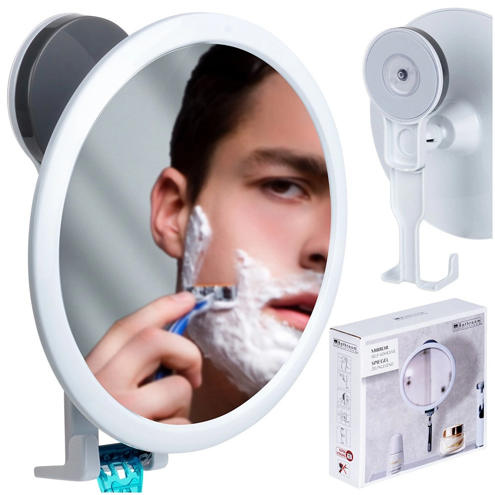 Praktyczne okrągłe lusterko kosmetyczne o średnicy 17 cm z mocną przyssawką do montażu bez wiercenia. Oferuje regulowany kąt, biała plastikową ramkę oraz zintegrowane haczyki na drobne akcesoria do 2 kg. Idealne do łazienki do makijażu, golenia i codziennej pielęgnacji.