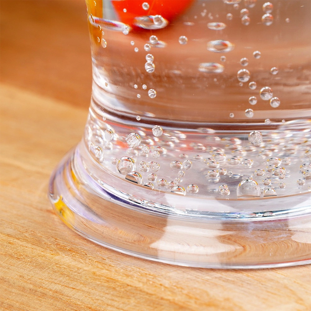 Kształt z poszerzonym dnem zwiększa stabilność na stole i zmniejsza ryzyko przewrócenia, niezależnie czy podajesz piwo, napój gazowany czy wodę.