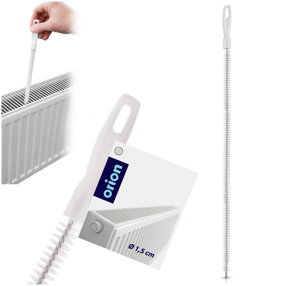 Smukła szczotka z elastycznym rdzeniem czyści kurz i zabrudzenia nawet w ciasnych lamelach i kratkach grzejników, poprawiając higienę i przepływ powietrza.