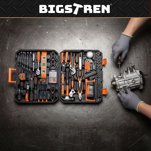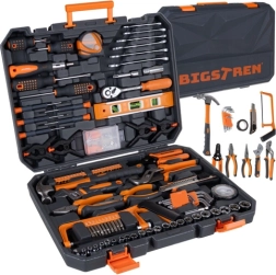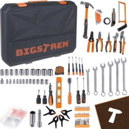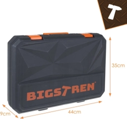 Praktyczny zestaw narzędzi BIGSTREN w solidnej walizce łączy wszystko, czego najczęściej potrzebujesz w domu i warsztacie. Zawiera 168 elementów – klucze, nasadki, bity, śrubokręty, szczypce oraz akcesoria – a dzięki przejrzystej wkładce każdy element ma swoje miejsce. Nie brakuje grzechotki 3/8” z 72 zębami dla płynnego dokręcania, magnetycznych końcówek dla pewnej pracy oraz trwałych części z stali chromowo‑wanadowej (CrV).