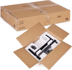 Boczna dźwignia aktywuje siłownik pneumatyczny do szybkiej zmiany wysokości. Łatwo przełączysz się między pracą na siedząco a stojąco w kilka sekund.