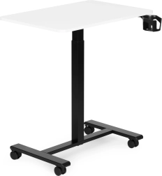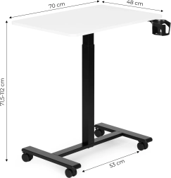 Kompaktowy mobilny stół z płynną pneumatyczną regulacją wysokości 71,5–112 cm zapewnia wygodną pracę na siedząco i stojąco. Dzięki blokowanym kółkom, stabilnej metalowej konstrukcji oraz praktycznemu uchwytowi na napoje jest idealny do home office, salonu i sypialni. Udźwig do 25 kg i wsparcie dla zdrowej postawy ciała oraz wyższej produktywności.