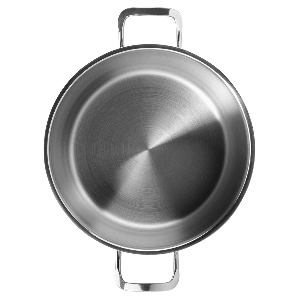 Ten solidny garnek z wysokiej jakości stali nierdzewnej 18/10 w matowym wykończeniu z eleganckim błyszczącym pasem w górnej części został zaprojektowany do wymagającego gotowania domowego i profesjonalnego. Wielowarstwowe dno akutermiczne zapewnia efektywne przenoszenie ciepła, dzięki czemu potrawy gotujesz szybciej, równomierniej i z mniejszym zużyciem energii.