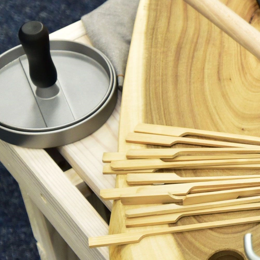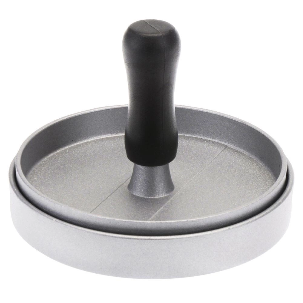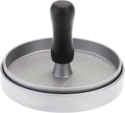 Praktyczna prasa do burgerów o średnicy 11,5 cm formuje z mielonego mięsa idealnie równe i jednakowo grube kotlety. Dzięki solidnej aluminiowej konstrukcji i ergonomicznemu uchwytowi praca jest szybka i wygodna, a rezultatem są zawsze jednolite porcje, perfekcyjny kształt i spójna grubość dla równomiernego wysmażenia.