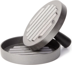 Z przyjemnym w dotyku silikonowym uchwytem i wytrzymałym aluminiowym korpusem prasa łatwo dociska mięso do formy z żłobieniami, które sprzyjają lepszemu wysmażeniu i atrakcyjnemu wyglądowi. Prasa idealna do kuchni domowej, na grilla w ogrodzie oraz do gastronomii – zawsze przygotujesz tę samą wielkość i wagę burgera.
