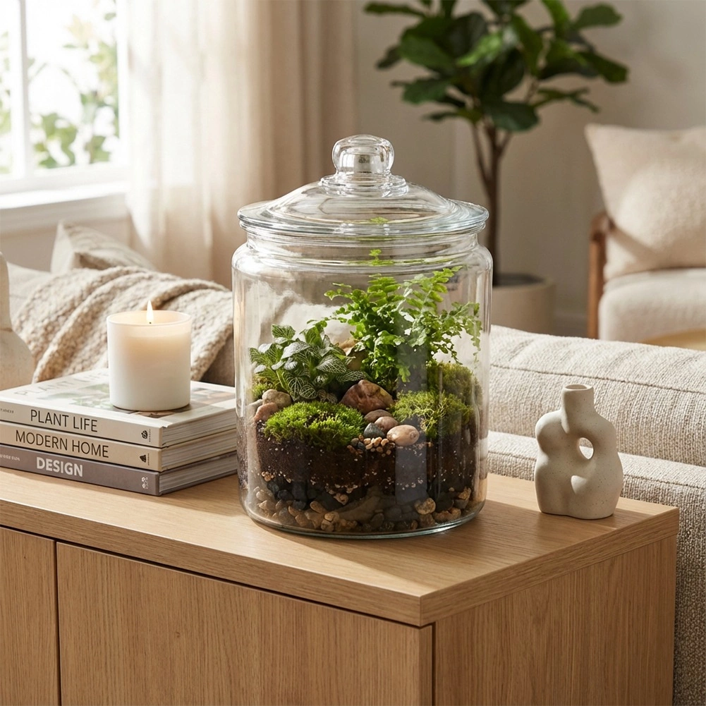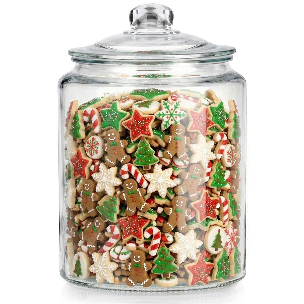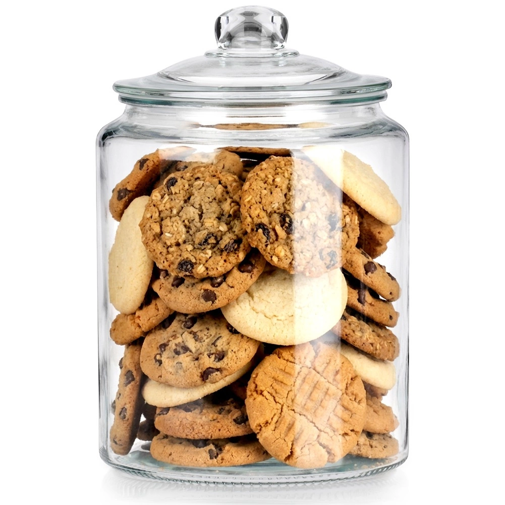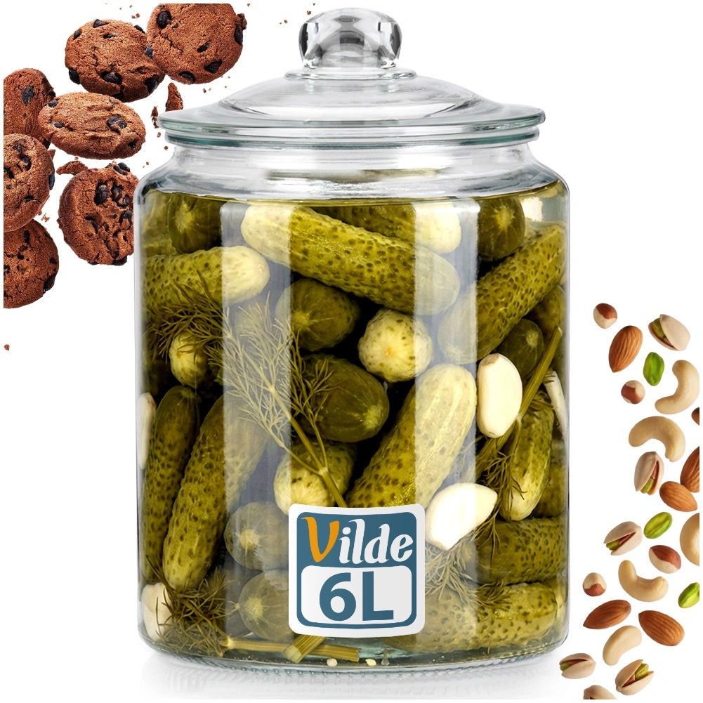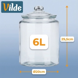 Duży słoik ze szkła łączy elegancję z funkcjonalnością. Dzięki przezroczystemu, grubemu szkłu zawsze masz doskonałą kontrolę nad zawartością, a szklana pokrywka z uszczelką chroni żywność przed wilgocią i utratą zapachu. Wymiary 20 × 20 × 29,5 cm zapewniają dużo miejsca na składniki i domowe przysmaki.