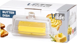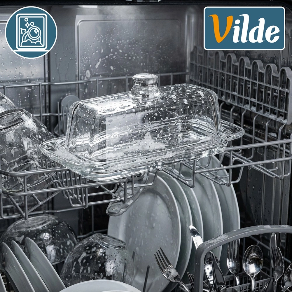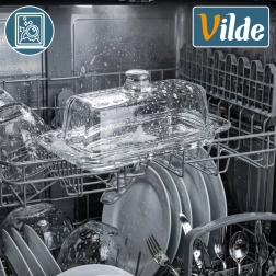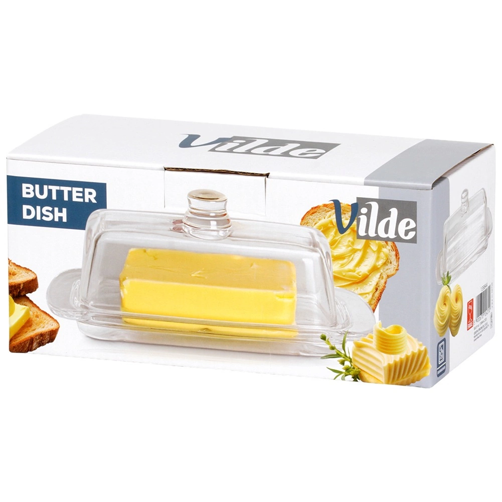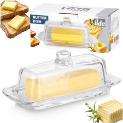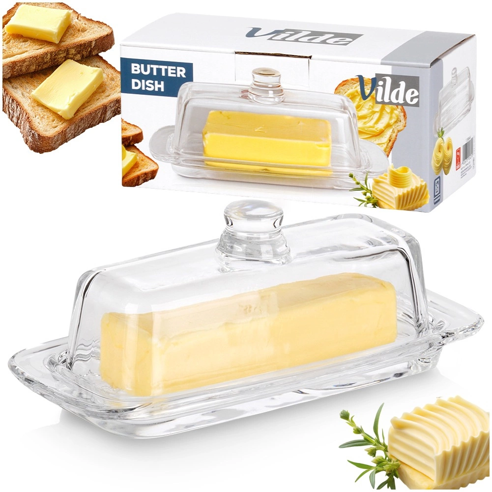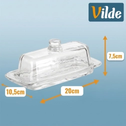 Stylowa szklana maselniczka VILDE idealna do codziennego użytku – od lodówki po stół. Przezroczyste wykonanie umożliwia łatwą kontrolę ilości masła, a elegancka kopuła z uchwytem zapewnia wygodne użytkowanie. Klasyczny kształt współgra z każdym serwisem stołowym i sprawia, że masło staje się atrakcyjnym elementem podania.