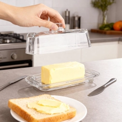 Dzięki solidnej szklanej konstrukcji masło jest chronione przed wysychaniem i niepożądanymi zapachami. Pokrywka utrzymuje świeżość i pełnię smaku, a wytrzymały materiał łatwo się czyści – maselniczkę można myć w zmywarce.