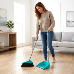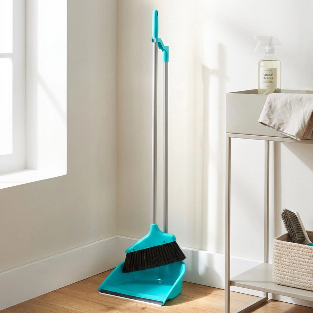 Praktyczny zestaw do codziennego sprzątania na stojąco: zmiotka z długim trzonkiem i pojemna szufelka z gumową krawędzią dla idealnego przylegania do podłogi. Dzięki długim trzonkom sprzątasz wygodnie bez schylania, oszczędzając plecy. Lekka konstrukcja, skuteczniejsze, twardsze włosie oraz oszczędne pionowe przechowywanie czynią z niego idealny wybór do każdego domu.