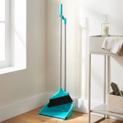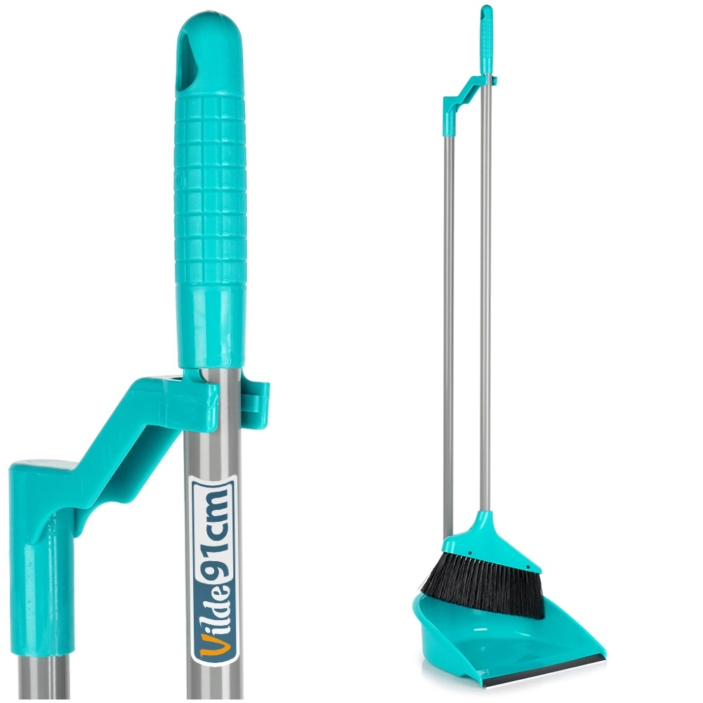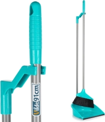 Ta zmiotka z szufelką w eleganckim turkusowym kolorze zapewnia wygodne sprzątanie w pozycji stojącej. Długie rączki gwarantują naturalną postawę ciała i minimalizują obciążenie pleców, a gumowa krawędź szufelki (szerokość 2 cm) idealnie przylega do podłogi, zbierając nawet drobny kurz bez pozostawiania resztek.