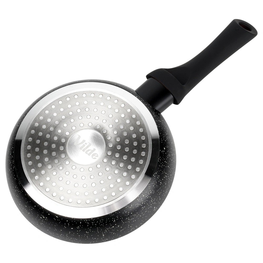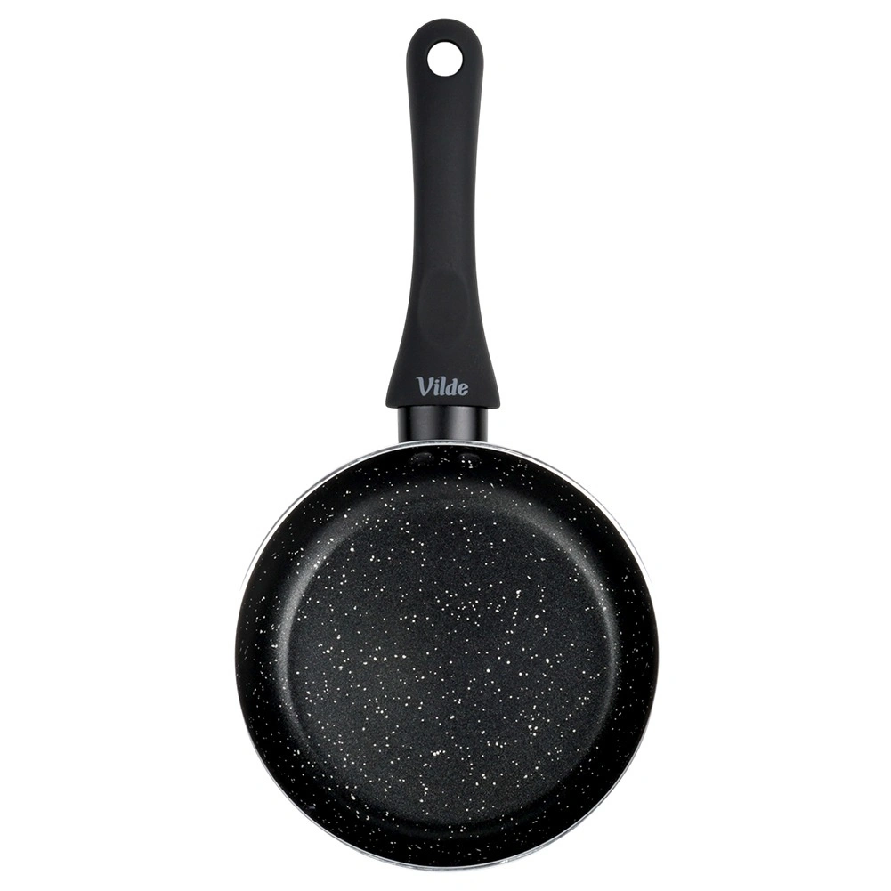 Ta stylowa patelnia z granitową, nieprzywierającą powłoką jest idealna do smażenia jajek, warzyw i mięsa z minimalną ilością tłuszczu. Aluminiowe korpus zapewnia szybkie przewodzenie ciepła i oszczędne gotowanie, a nowoczesne czarne wykończenie świetnie wpasuje się w każdą kuchnię.