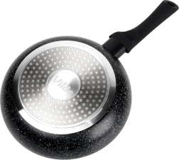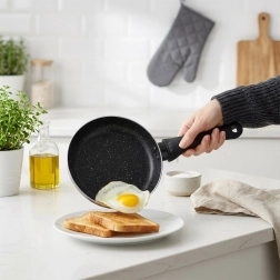 Stylowa i wytrzymała patelnia z linii Black Line wykonana jest z wysokiej jakości odlewanego aluminium z nieprzywierającą granitową powłoką. Dzięki głębszemu kształtowi świetnie nadaje się do smażenia i duszenia – od jajek po soczyste mięso i chrupiące warzywa. Nieprzywierająca powierzchnia pozwala gotować z minimalną ilością oleju i znacząco ułatwia czyszczenie.