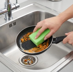Delikatne jajka, ryby i warzywa bez przypalania i z minimalną ilością oleju. Jedzenie łatwo odchodzi od powierzchni, a patelnię czyści się bez wysiłku.