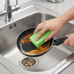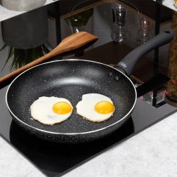 Specjalna warstwa granitowa zapewnia łatwe odchodzenie potraw, mniejsze zużycie tłuszczu i proste czyszczenie – idealna do codziennego użytku.