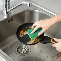 Gotuj z minimalną ilością tłuszczu bez przypalania. Trwała powłoka ułatwia uwalnianie potraw i czyszczenie, oszczędzając czas w kuchni.