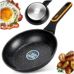 Kompaktowa patelnia granitowa o średnicy 20 cm do codziennego gotowania. Dzięki nieprzywierającej powłoce, szybkiemu i równomiernemu rozprowadzaniu ciepła oraz kompatybilności ze wszystkimi typami kuchenek, w tym indukcją przygotujesz potrawy z minimalną ilością tłuszczu, łatwo i bez przypalania. Ergonomiczny uchwyt nie nagrzewa się i zapewnia bezpieczny chwyt; patelnię można myć w zmywarce.