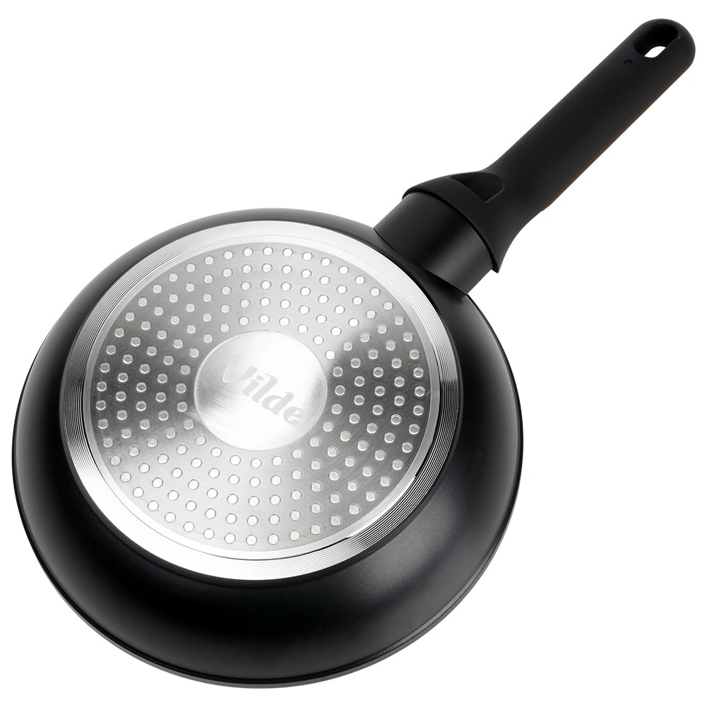 Korpus z odlewanego aluminium i dno indukcyjne zapewniają efektywne przenoszenie ciepła dla oszczędnego i równomiernego smażenia oraz duszenia.