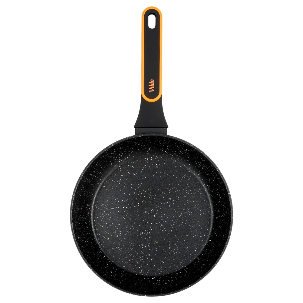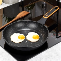 Ta granitowa patelnia z odlewanego aluminium łączy trwałość, elegancki wygląd i świetne właściwości użytkowe. Nieprzywierająca warstwa granitowa minimalizuje użycie oleju i ułatwia czyszczenie, a wielowarstwowe dno zapewnia szybkie i oszczędne nagrzewanie. Nowoczesny ergonomiczny uchwyt z powłoką antypoślizgową nie nagrzewa się podczas gotowania i pewnie leży w dłoni.