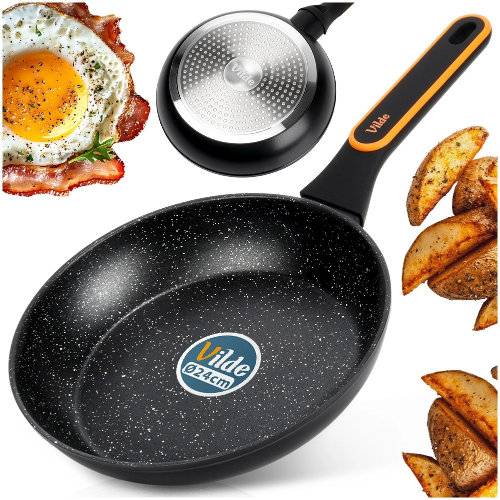 Wytrzymała warstwa granitowa zapobiega przypalaniu i umożliwia gotowanie z minimalną ilością oleju. Jedzenie łatwo się odkleja, a czyszczenie zajmuje chwilę.