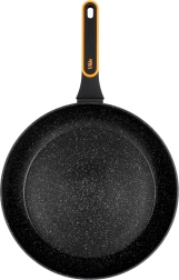 Solidna patelnia z odlewu aluminiowego o nowoczesnym, kamiennym wyglądzie idealnie nadaje się do smażenia i duszenia. Trwała nieprzywierająca warstwa granitowa w czarnym kolorze zapewnia łatwe uwalnianie potraw i szybkie czyszczenie – także w zmywarce. Ergonomiczny uchwyt z antypoślizgowym wykończeniem i praktycznym otworem do zawieszenia nie nagrzewa się podczas gotowania.