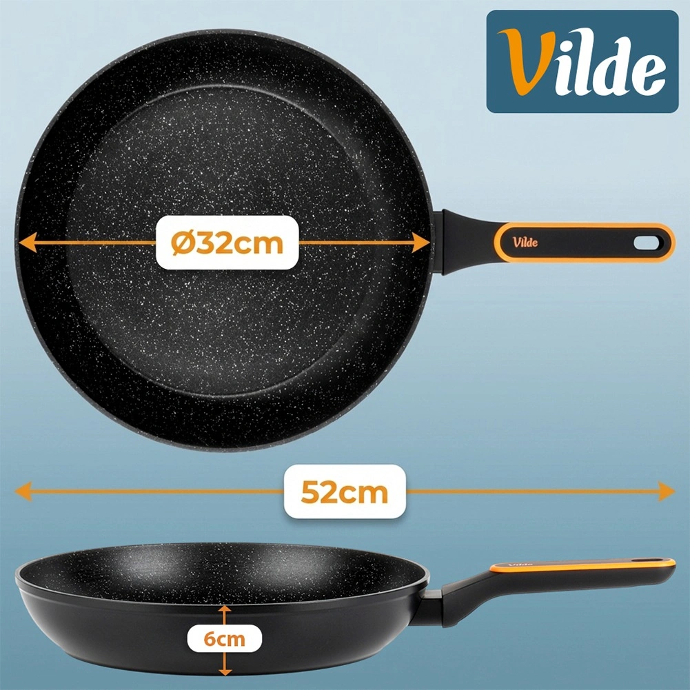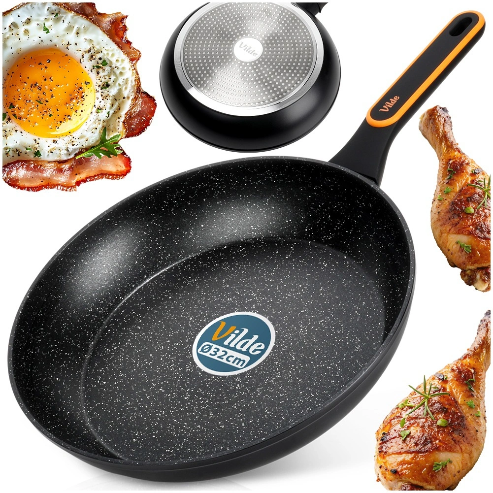 Uniwersalna granitowa patelnia o średnicy 32 cm do codziennego gotowania. Dzięki nieprzywierającej powłoce granitowej, szybkiemu i równomiernemu rozprowadzaniu ciepła oraz wygodnemu, nienagrzewającemu się uchwytowi przygotujesz mięso, warzywa i jajka z minimalną ilością tłuszczu na wszystkich typach kuchenek, w tym indukcji.