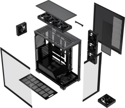 - Bok: 3× 120 mm; Góra: 3× 120 mm lub 2× 140 mm; Tył: 1× 120 mm; Składany uchwyt: 1× 120 mm