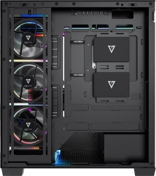 - 8× 120 mm ARGB (3× z odwróconymi łopatkami przy tacce, 1× tylny 120 mm ARGB, 1× 120 mm ARGB w składanym uchwycie do GPU, 3× górne 120 mm ARGB)