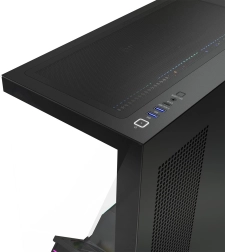 - Topowy airflow: 8× 120 mm ARGB (w tym 3 z odwróconymi łopatkami) + sterujący kontroler ARGB.