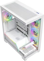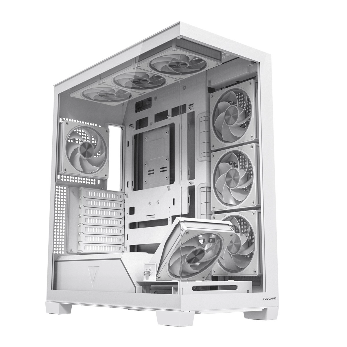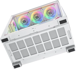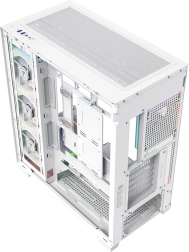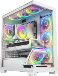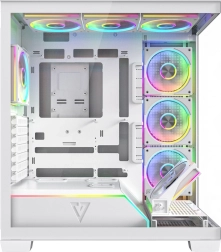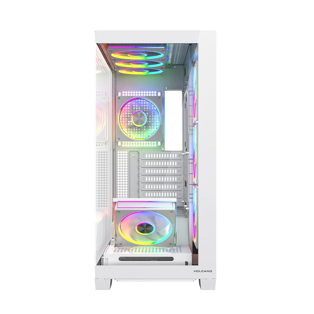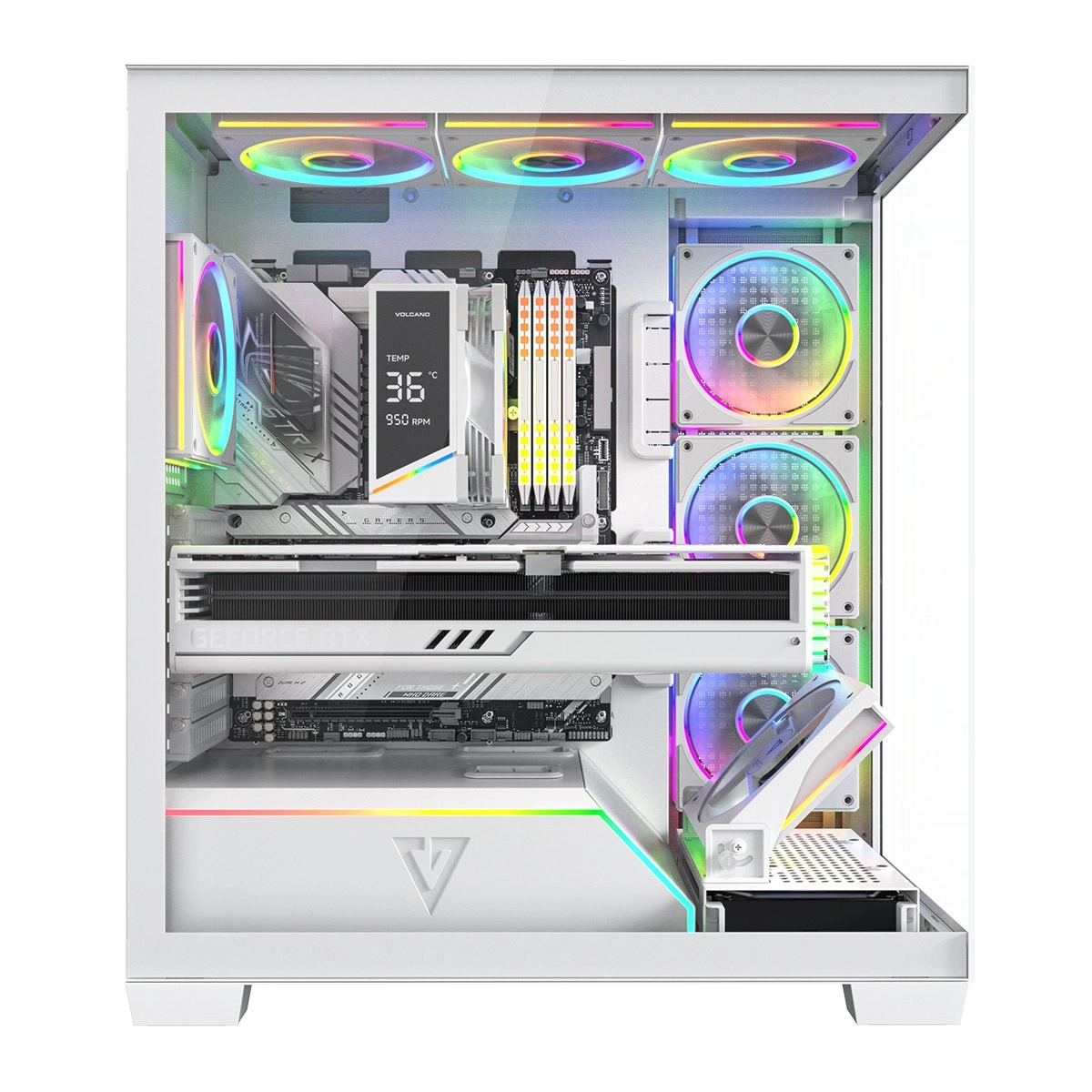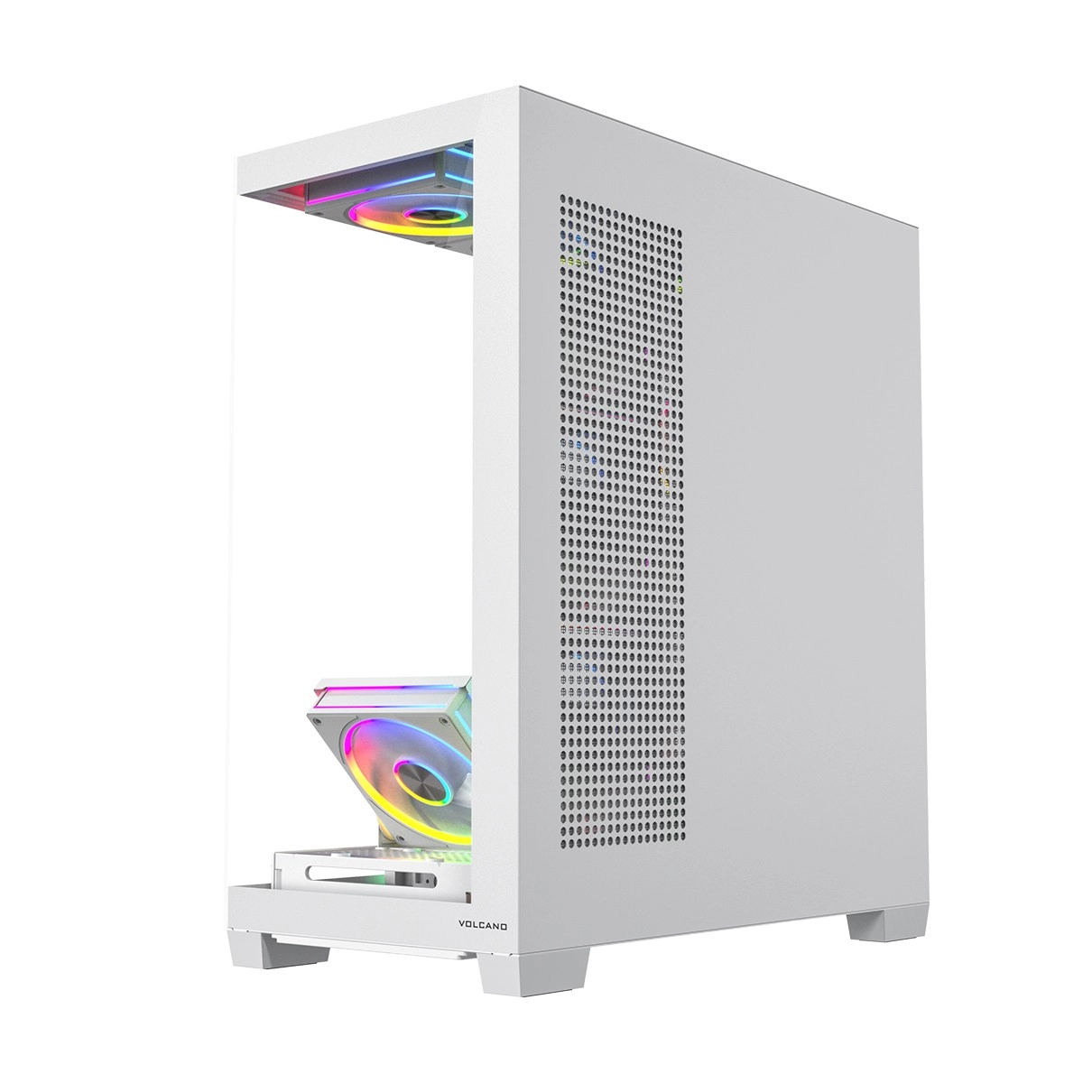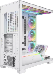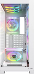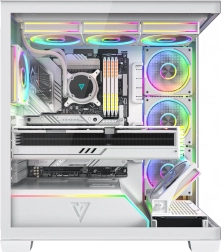 Volcano Stellar Plus ARGB łączy atrakcyjny „aquarium” design ze znakomitym przepływem powietrza. Osiem wentylatorów PWM ARGB, w tym trzy z odwróconymi łopatkami oraz regulowana boczna ramka do nawiewu na GPU, utrzymuje temperatury w ryzach nawet podczas długich sesji gamingowych. Hartowane szkło z boku i z przodu efektownie eksponuje podzespoły, a pasek LED ARGB na tunelu PSU dodaje zestawowi wizualnego efektu „wow”.