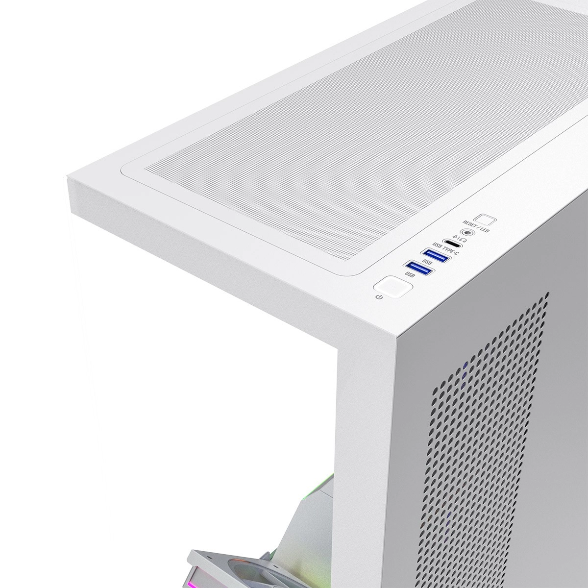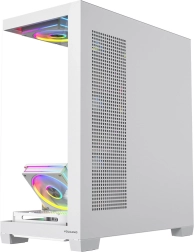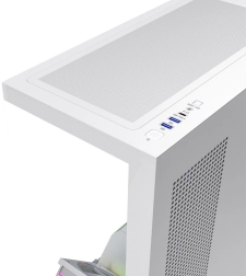 Przedni i boczny panel z hartowanego szkła efektownie eksponują komponenty oraz podświetlenie ARGB. Czysty wygląd podkreśla pasek LED na tunelu zasilacza.