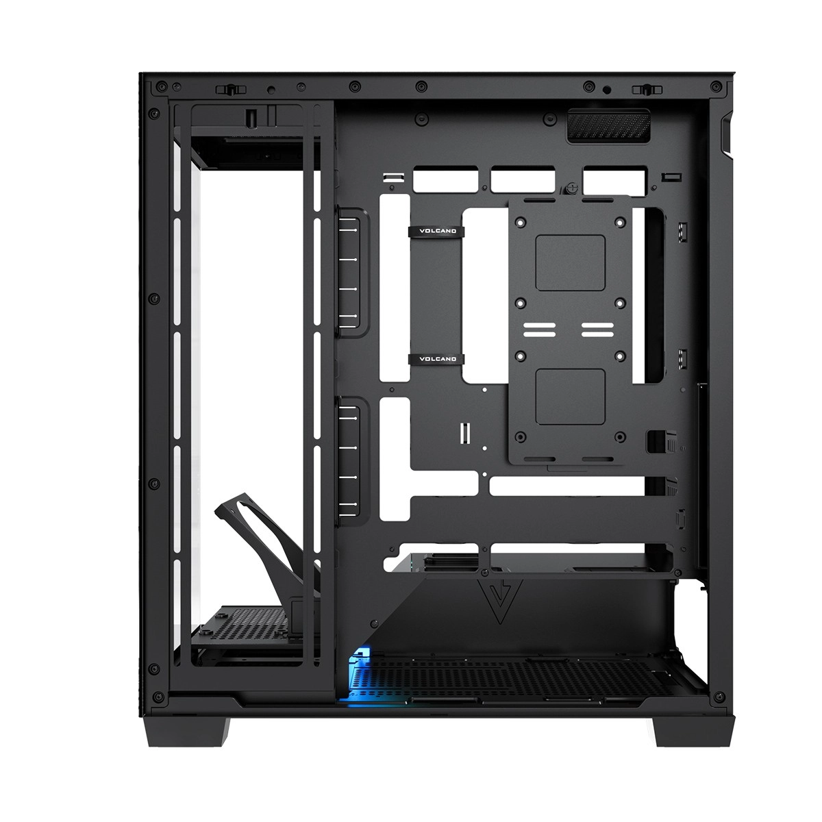 MODECOM VOLCANO STELLAR PLUS oferuje nowoczesny „akwariowy” design z hartowanym szkłem z przodu i z boku, aby Twoje komponenty mogły się w pełni zaprezentować. Dzięki powiększonej przestrzeni za płytą główną i organizerom na rzep zarządzanie okablowaniem jest łatwe, a efekt to czysty i profesjonalny wygląd. Obudowa dostarczana jest bez wentylatorów, więc ustawisz airflow dokładnie pod siebie, w tym unikalną składaną ramkę na wentylator 120 mm, który tłoczy chłodne powietrze prosto na GPU.