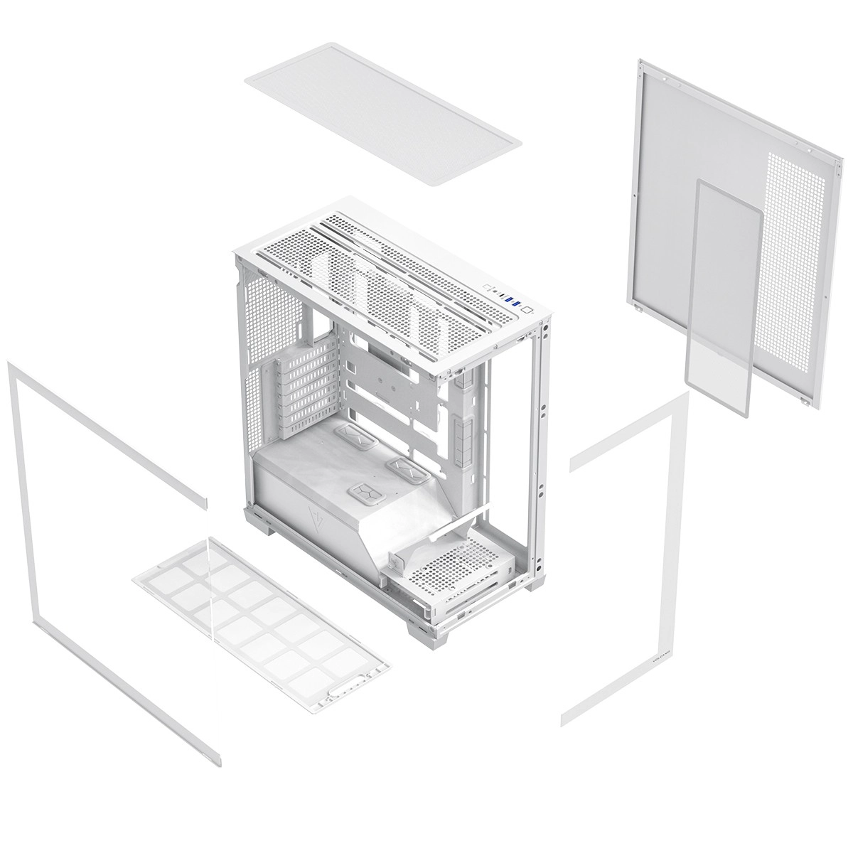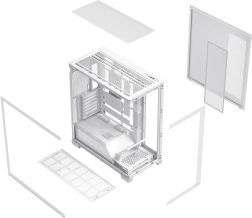 Obudowa obsługuje płyty ATX/M-ATX/ITX oraz nowoczesne płyty główne z odwróconymi złączami (BTF). Przemyślana wentylacja z możliwością montażu wielu wentylatorów i składaną ramką dla wentylatora 120 mm pozwala skierować chłodne powietrze bezpośrednio na kartę graficzną. Dla wymagających zestawów przygotowano wsparcie radiatorów do 360 mm u góry i z boku oraz 120 mm z tyłu.