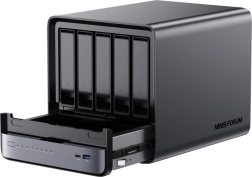- 5 × 3,5" / 2,5" HDD (do 22 TB na dysk, SATA 3.0)
