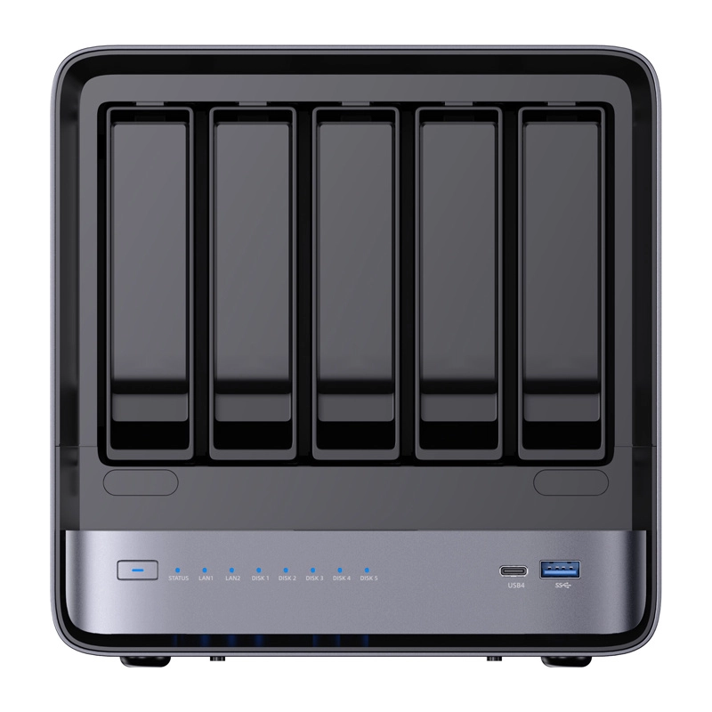 Kompaktowy MINISFORUM NAS N5 łączy wydajność mini PC i elastyczność NAS. Oferuje 8‑rdzeniowy AMD Ryzen 7 z grafiką Radeon 780M, do 96 GB DDR5, miejsce na maksymalnie 8 nośników o łącznej pojemności do 144 TB, szybkie sieci 10 GbE + 5 GbE, nowoczesną łączność USB4 i HDMI 2.1 oraz rozszerzenia przez PCIe x16 i OCuLink. System MinisCloud OS zapewnia łatwe zarządzanie, snapshoty ZFS i bezpieczny zdalny dostęp.