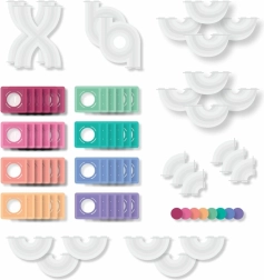 Mocne magnesy neodymowe i przezroczyste pastelowe elementy umożliwiają tworzenie wysokich wież, tuneli i lejków, przez które kulki płynnie przejeżdżają.