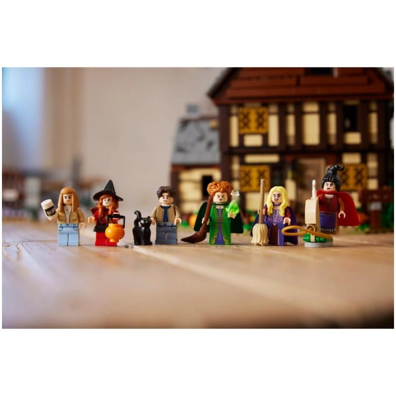 W zestawie znajduje się 6 minifigurek oraz figurka Thackery’ego Binxa (kot), a także wiele tematycznych akcesoriów: zielony błyskawiczny czar, dyniowe wiaderko, miotła, mop i odkurzacz do odtwarzania scen z filmu. Genialna brama/cmentarz służy jako podstawka do ekspozycji całego zestawu.
