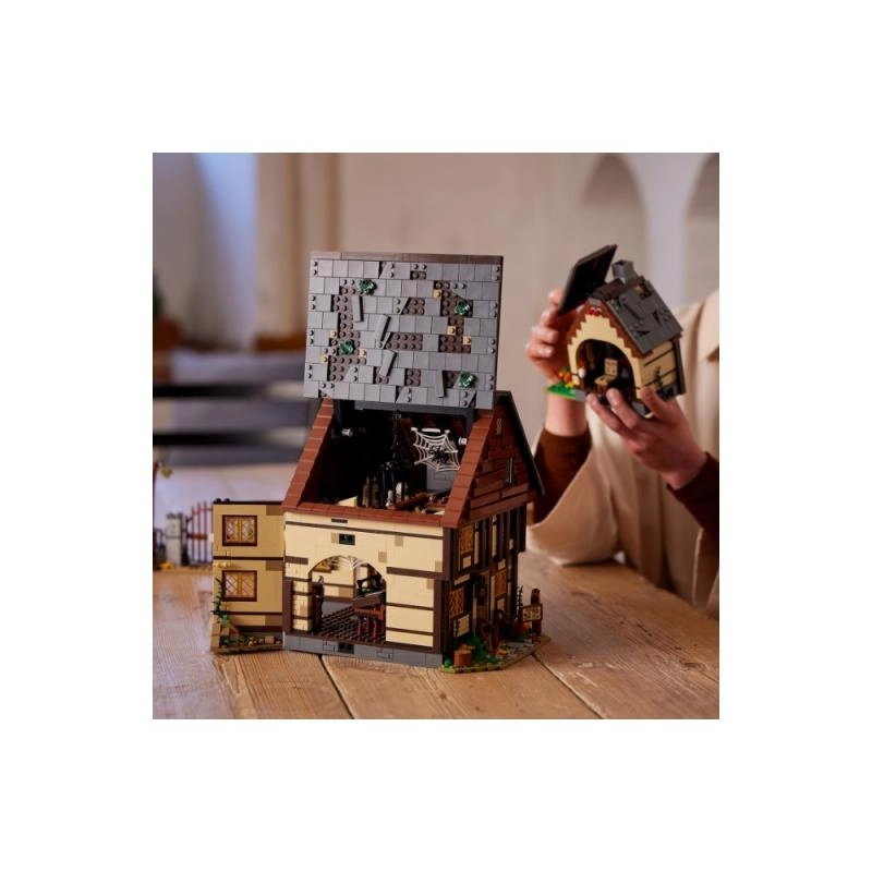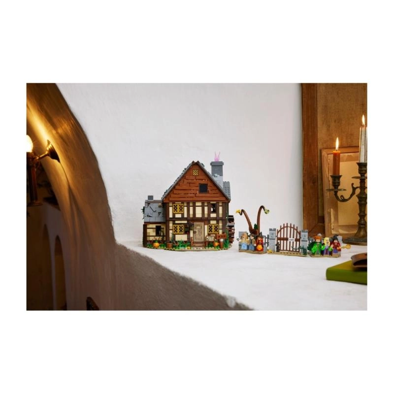 Odkryj kultową chatkę z filmu Disney Hokus pokus w formie niezwykle szczegółowego zestawu dla fanów i kolekcjonerów. Model otwiera się na kilka sposobów, aby ułatwić dostęp do wnętrza: zobaczysz muzealny sklepik, sypialnię czarownic pełną nietoperzy oraz kocioł ze świecącą kostką LEGO, która podświetla ogień od dołu. Nie brakuje Księgi czarów, bocznego pokoju do uwięzienia Dani oraz działającego koła wodnego z kominem, z którego podczas obracania „unosi się” różowy dym.