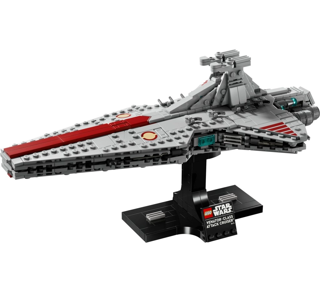 Stwórz w domu kawałek galaktyki z zestawem LEGO Star Wars krążownik szturmowy klasy Venator. Ten szczegółowy kolekcjonerski model w odcieniach szarości z czerwonymi akcentami wiernie oddaje ikoniczny, klinowaty kształt statku z STAR WARS: Zemsta Sithów. Dzięki eleganckiej podstawce z tabliczką doskonale prezentuje się na półce i biurku, a dorosłych fanów i kolekcjonerów zachwyci dopracowanymi detalami, w tym silnikami, wieżyczkami i antenami.