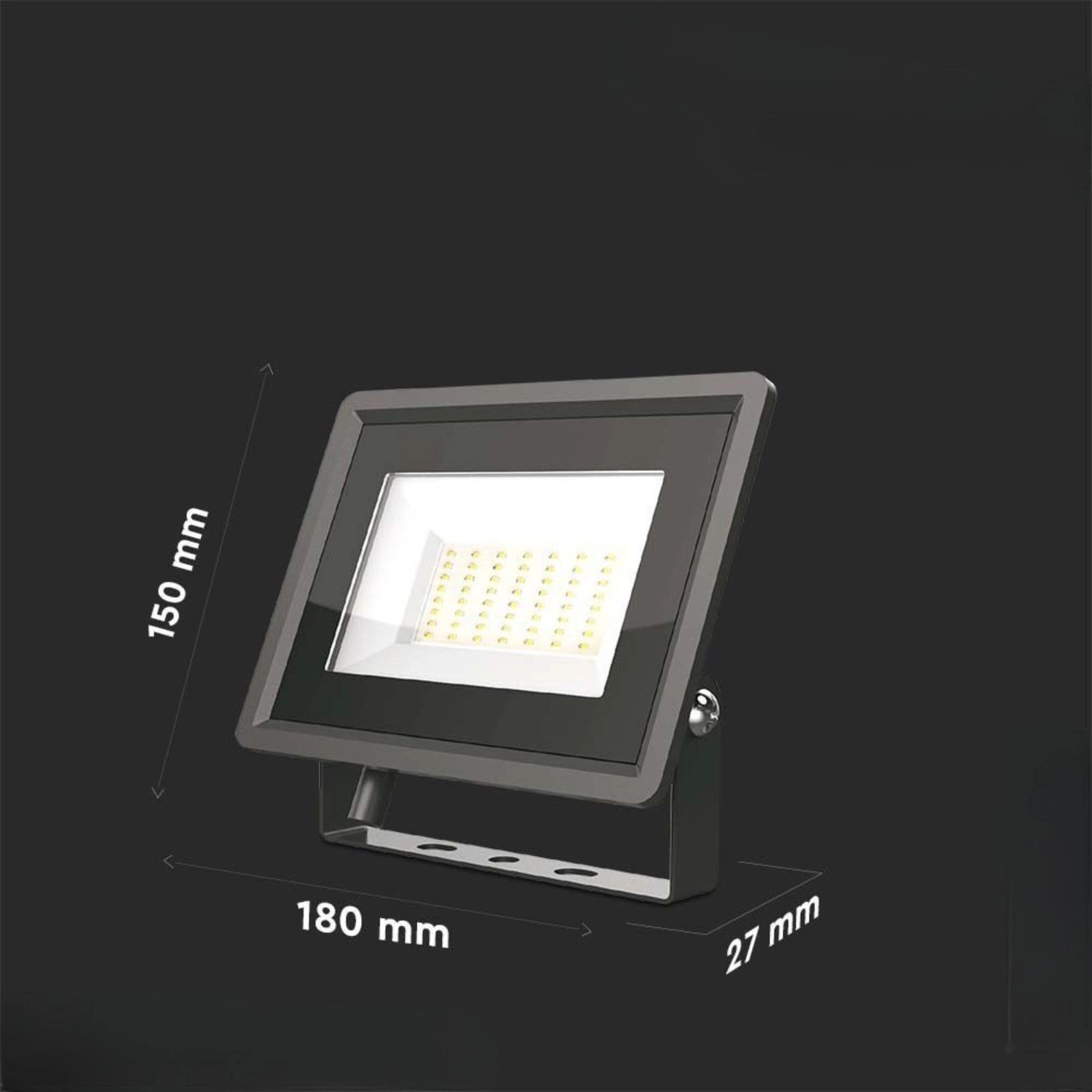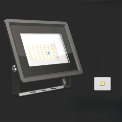 Wydajny reflektor LED 50 W jest wyposażony w zaawansowany układ LED SMD oraz zintegrowany sterownik IC, który zapewnia stabilny prąd bez konieczności stosowania zewnętrznego zasilacza. Dzięki neutralnej bieli (4000 K) zapewnia naturalne i komfortowe oświetlenie odpowiednie do zastosowań komercyjnych i przemysłowych.