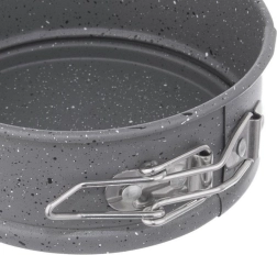 Praktyczna mała forma idealna do pieczenia mini tortów, serników i schładzanych deserów. Granitowa, nieprzywierająca warstwa minimalizuje ryzyko przypiekania i ułatwia serwowanie oraz czyszczenie. Rozszerzana obręcz z zamkiem i wyjmowane dno zapewniają wygodne wyjmowanie nawet kruchych spodów.