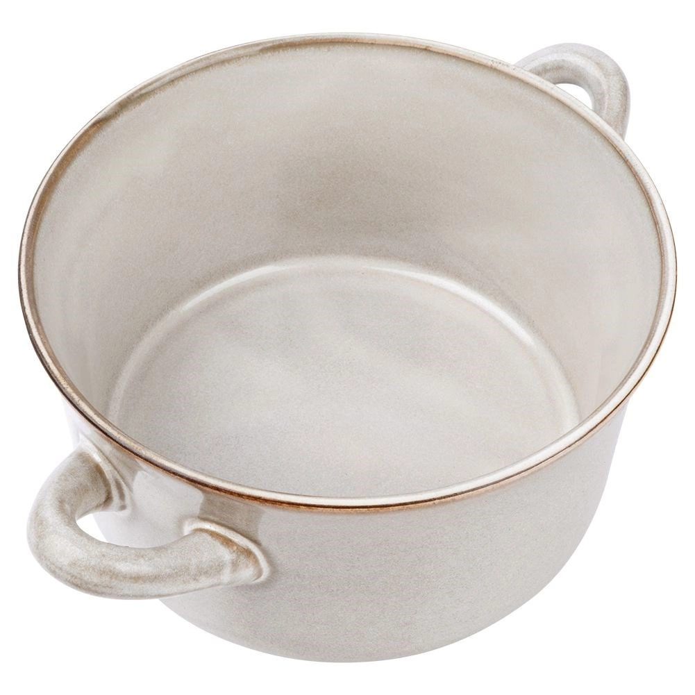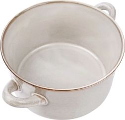 Ta uniwersalna miska z praktycznymi bocznymi uchwytami to świetny wybór zarówno na co dzień, jak i do uroczystego serwowania. Pojemność 600 ml i szeroki rant zapewniają wygodne nabieranie oraz przenoszenie prosto z kuchenki na stół. Trwała glazura w subtelnym szarym odcieniu nada Twojej kuchni nowoczesny, a zarazem przytulny wygląd.