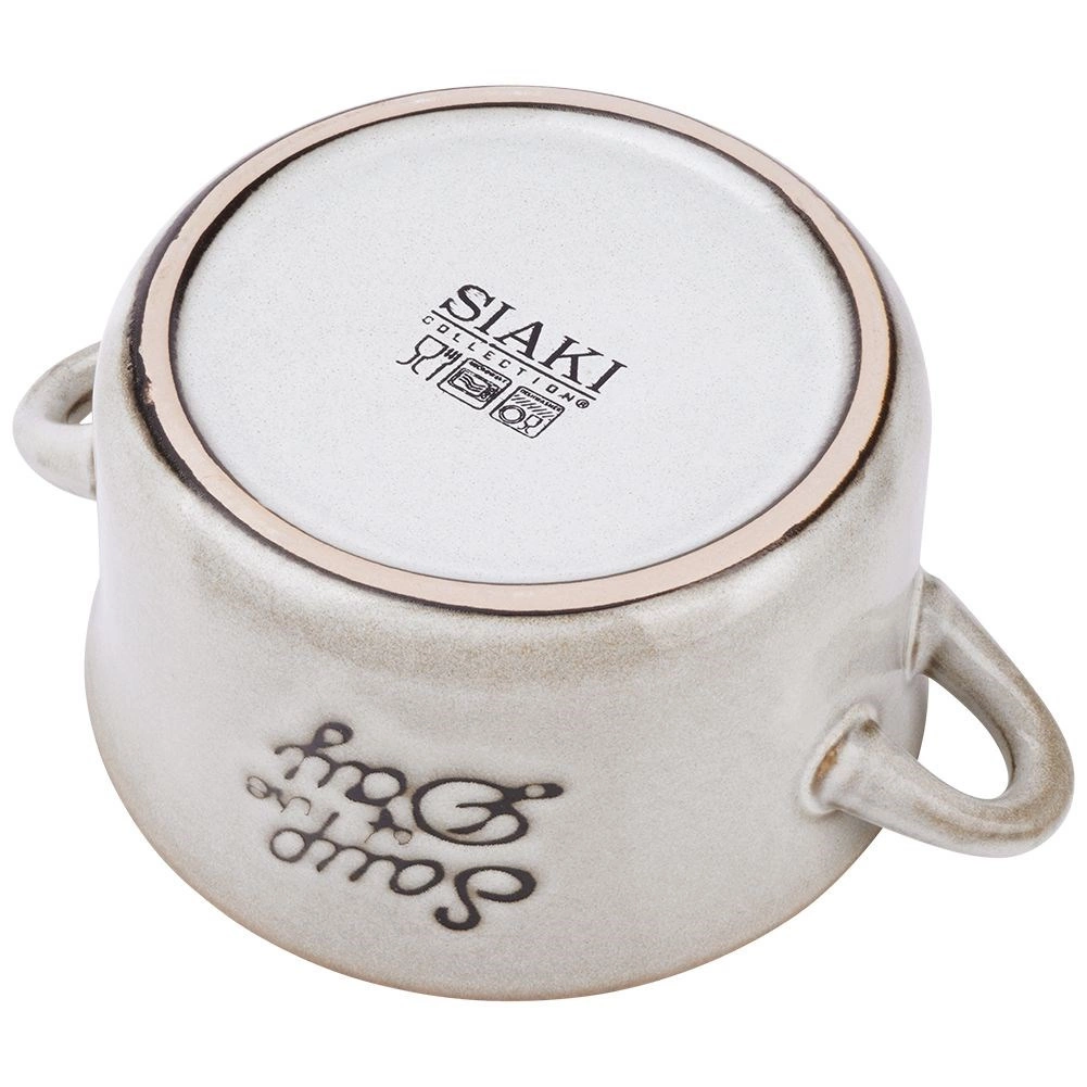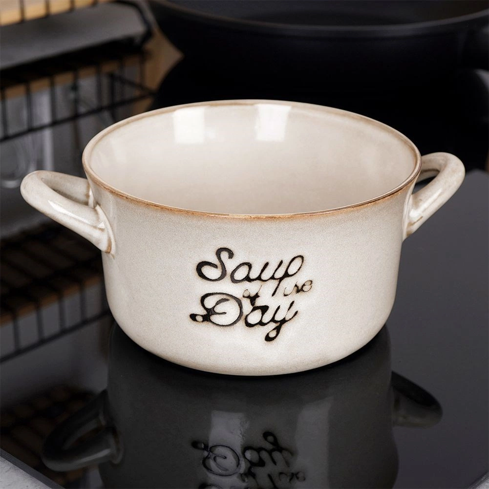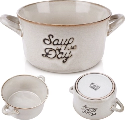 Praktyczna ceramiczna miska do zupy o pojemności 600 ml z dwoma uchwytami dla wygodnego serwowania. Idealna do zup, bulionów i kremów, ale także do płatków, jogurtu czy owoców. Wysokiej jakości ceramika w eleganckiej szarości, odpowiednia do zmywarki i kuchenki mikrofalowej.